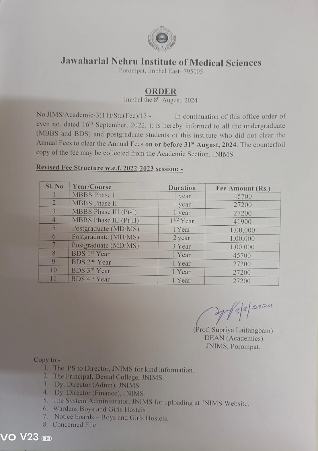 REVISED FEE STRUCTURE w.e.f. 2024-2025: